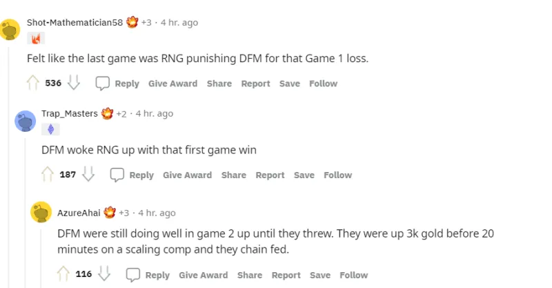 DFM第二把打得还不错,直到他们送了。他们在20分钟之前领先三千经济,而且还拿着后期阵容,结果他们一个接一个的送。