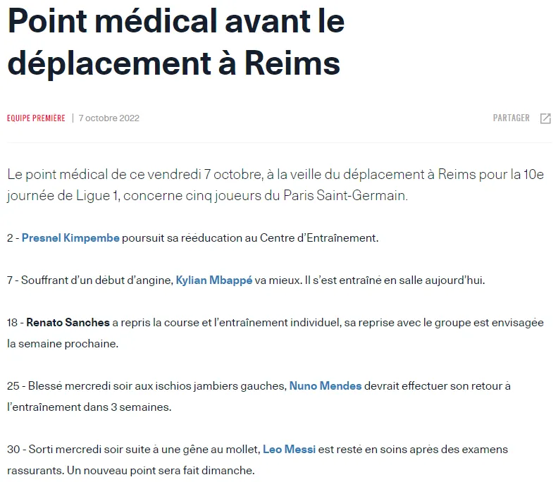 译者注:巴黎官网原文:7 - Souffrant d’un début d’angine, Kylian Mbappé va mieux. Il s’est entraîné en salle aujourd’hui.