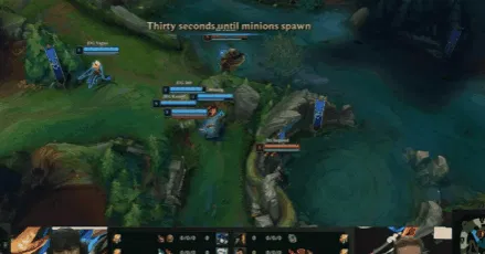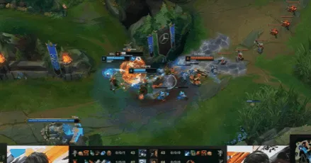 40秒,锤石钩到塔姆,JDG众人将其集火秒掉,拿下一血。