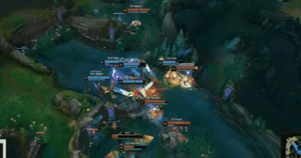 17分钟,小龙团战一触即发,船长先行消耗,EG完成一波1换5完美团战,顺势拿下小龙。