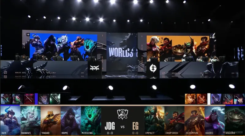 JDG选用:369猪妹、Kanavi破败之王、Yagao沙皇、Hope厄斐琉斯、Missing锤石