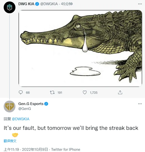 GEN官推回复道:是我们的失误,明天把连胜带回来!