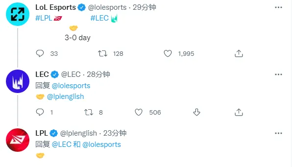 LOL赛事官推:LPL和LEC 3-0的一天!