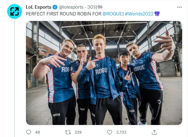 LOL赛事官推:RGE第一周打出了完美的表现