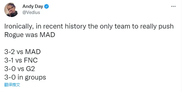 LEC解说Vedius:实际上,真正推特RGE进步的队伍是MAD