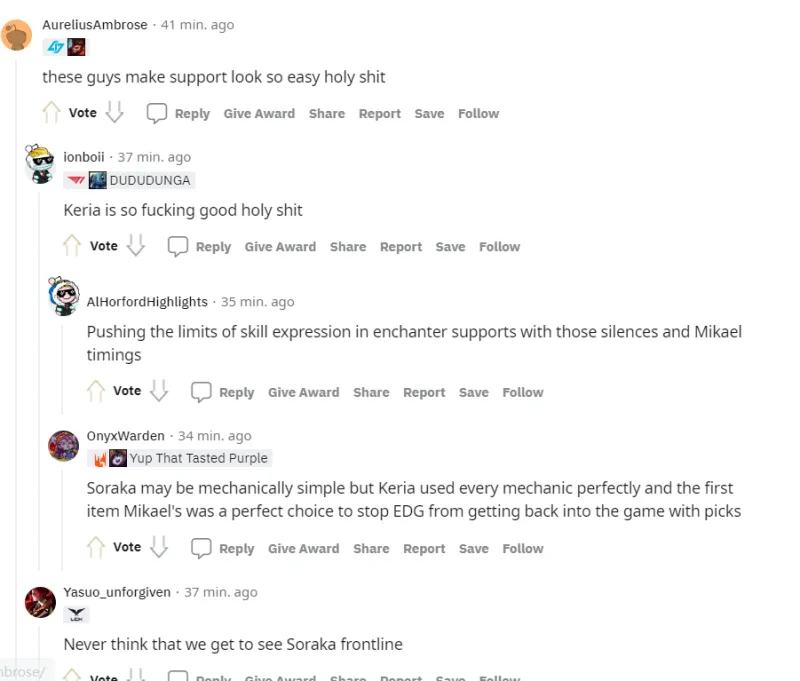 索拉卡也许操作很简单,但是Keria将每个机制都运用的非常完美,而且第一件出坩埚简直完美,这样能阻止EDG通过抓人的方式来进行翻盘。