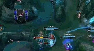9分钟:猪妹来到下路抓死对方双人组,但是自家杰斯也被抓死,随后猪妹来到上路配合赶来的队友收掉对方野辅拿下先锋。