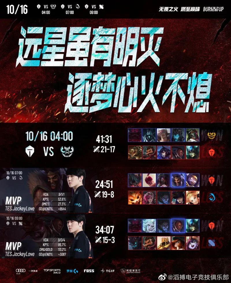 虎扑10月16日讯 遗憾出局TES官博发文告别世界赛,以下是微博原文