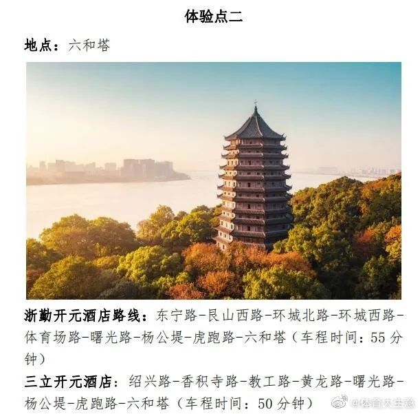 并且每个景点都有多个不同线路可供选择,且每个线路都途径不少名胜古迹,看得出来,线路设计得非常走心。另外,CBA还精心整理了杭州城市灯光秀的详细信息,供有兴趣的CBA球员欣赏。”
