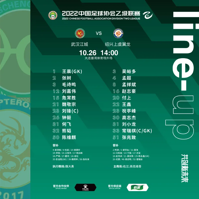26日下午的中乙联赛第11轮比赛,绍兴上虞翼龙1-0击败武汉江城,扬科维奇在中乙联赛的执教首秀取得开门红。