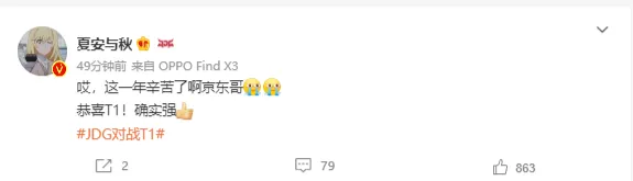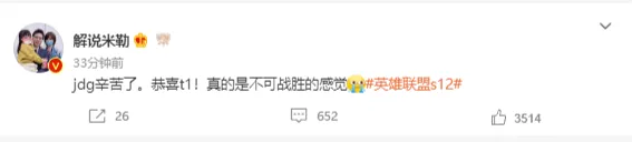 米勒:jdg辛苦了。恭喜t1!真的是不可战胜的感觉