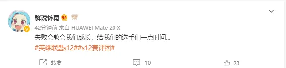 怀南:失败会教会我们成长,给我们的选手们一点时间...