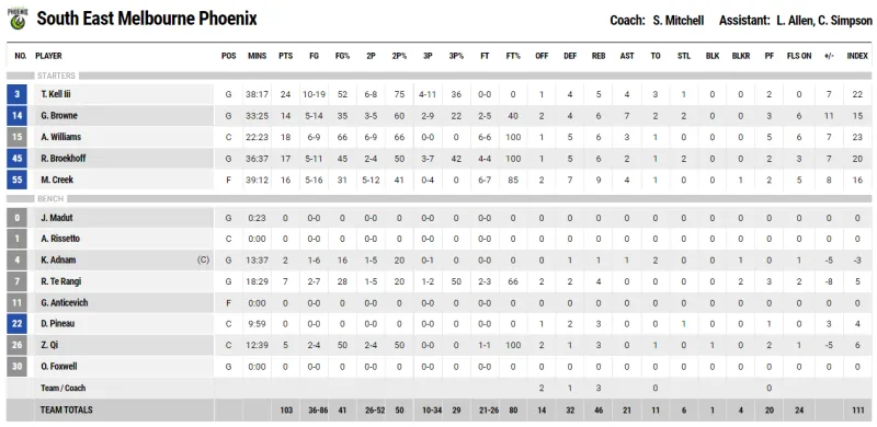 加时赛开始,凤凰队依靠布朗和科尔的出色发挥占得先机,领先优势一度扩大至9分,36人此后再难将比分扳平,最终全场比赛结束,凤凰103-98阿德莱德36人。