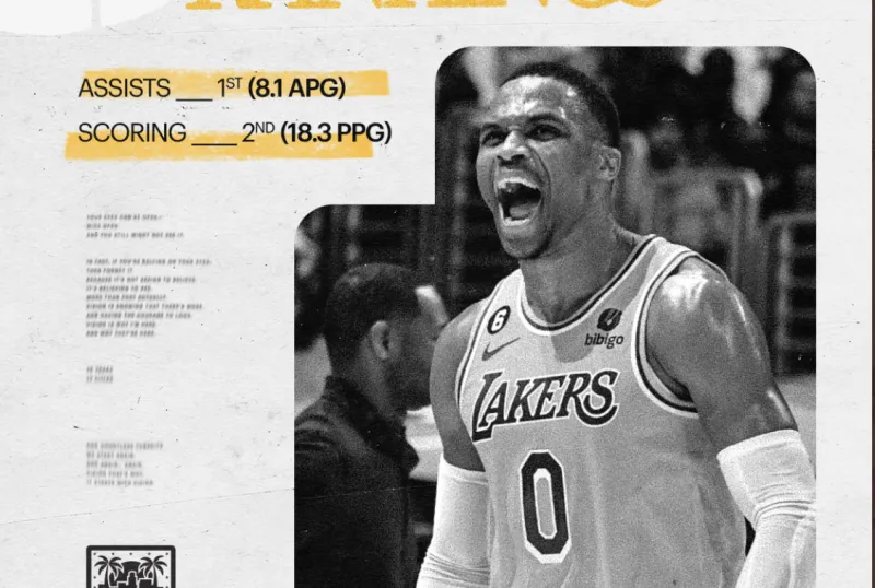 虎扑11月16日讯 今日,湖人官推在社交媒体上晒出一张关于威斯布鲁克的数据图,内容为威少本赛季替补时的得分助攻数据以及在替补球员中的排行: