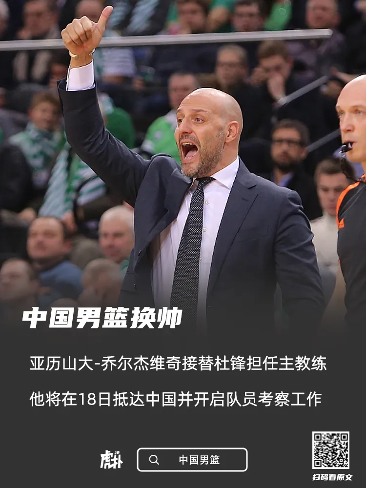 乔尔杰维奇将于11月18日抵达中国,在杭州完成入境隔离后前往CBA联赛赛区,与中国篮协及相关人员深入交流和沟通,全面开启中国男篮教练团队组建和国家队队员考察工作。