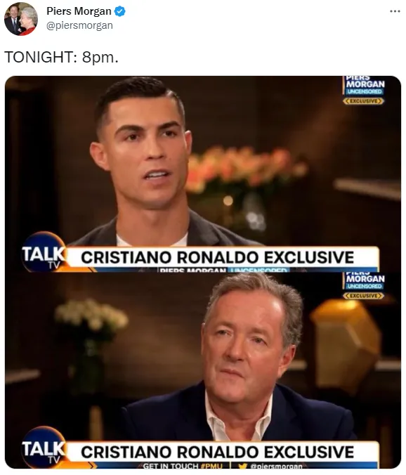 根据摩根的预告,他将在北京时间11月17日和18日凌晨四点分两天放出C罗此次的完整专访。