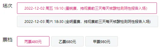 星锐赛门票分三档:丙票480元、乙票680元、甲票980元。
