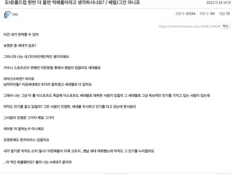 但(那位选手)还是不停吸引新的粉丝?那样的人才是真正的无视世代更替,天生的有人气的一个人。