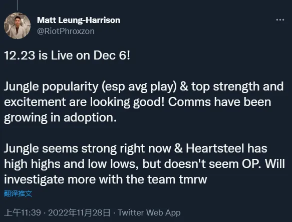 [情报站]lol平衡团队负责人:新机制表现好于预期;心之钢没那么op