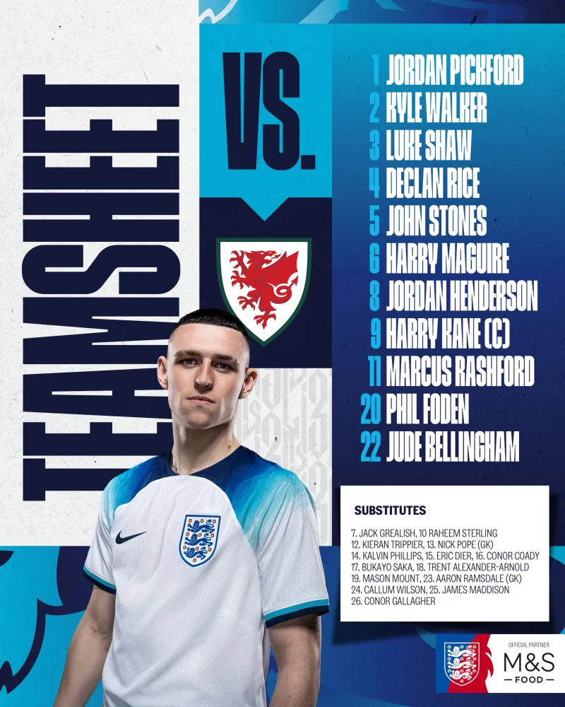 虎扑11月30日讯 北京时间11月30日03:00,世界杯小组赛B组第3轮,威尔士对阵英格兰,赛前,双方公布了首发阵容。
