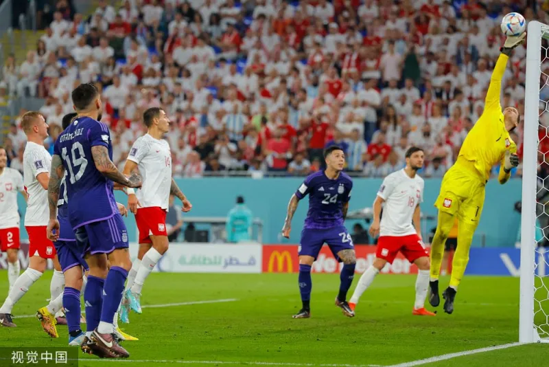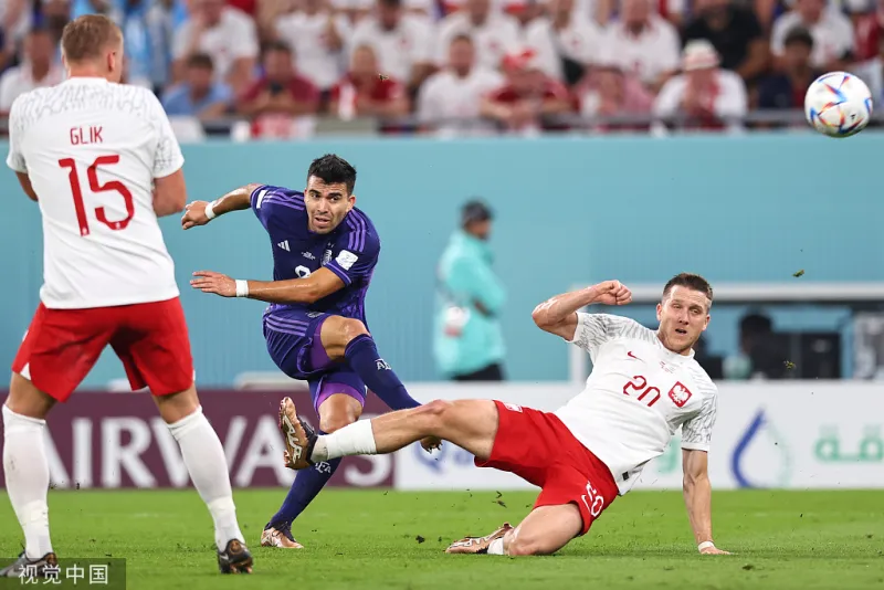46' 迪马利亚前场右侧直传,莫利纳下底横传中路,麦卡利斯特禁区内低射远角,皮球击中立柱弹入球门!阿根廷1-0波兰!