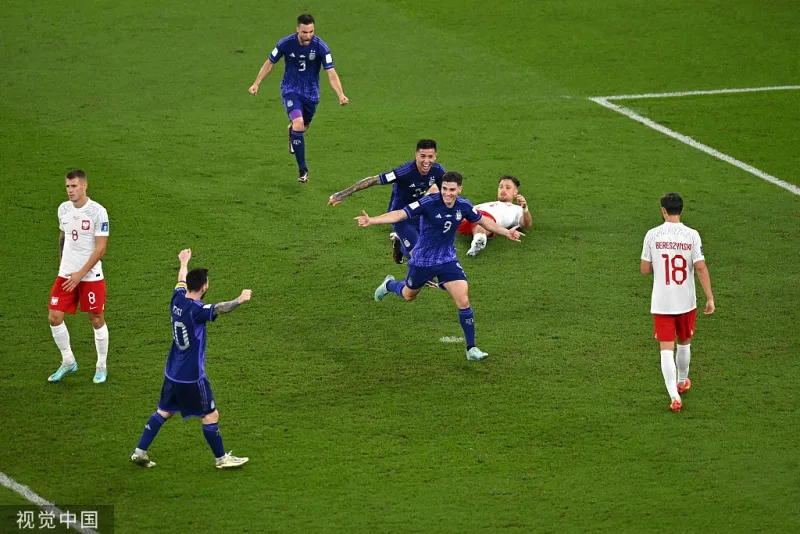 67' 阿根廷前场连续短传配合,恩佐-费尔南德斯直塞禁区,阿尔瓦雷斯稍作调整后抽射上角破门!阿根廷2-0波兰!