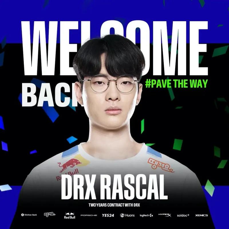 希望大家对成为LCK最佳上单的Rascal选手表示热烈欢迎,并希望大家多多支持DRX Rascal,并与他一起书写全新的篇章吧。