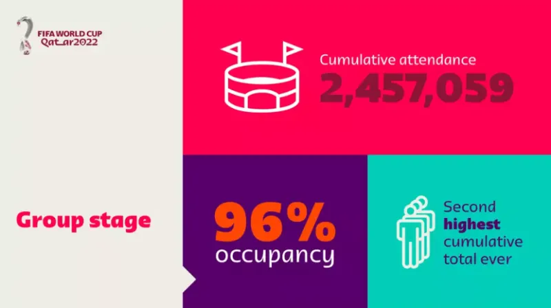 13个比赛日、48场小组赛共计245万人次到场观赛,平均上座率为96%,高于2018年的217万人次。阿根廷与墨西哥的比赛平局88,966名球迷来到卢赛尔球场,创造了自1994年世界杯决赛以来的新纪录。