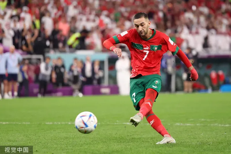 点球大战第4轮,阿什拉夫勺子点球命中,摩洛哥3-0淘汰西班牙