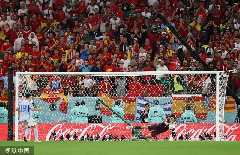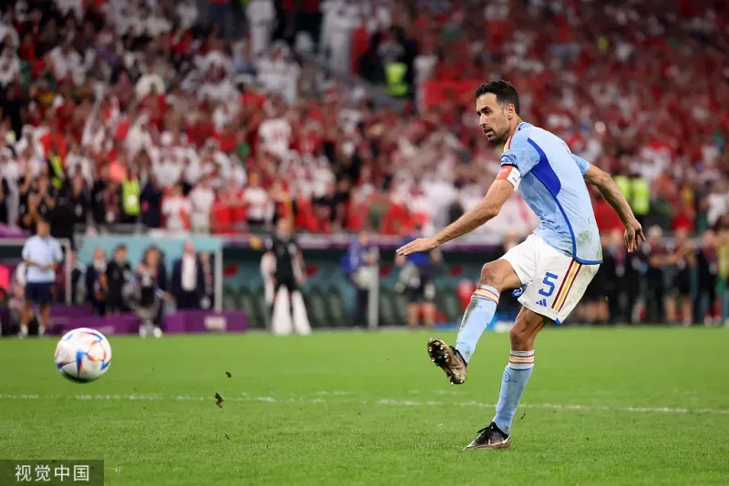 点球大战第3轮,巴农罚失,布斯克茨同样失点,西班牙0-2摩洛哥