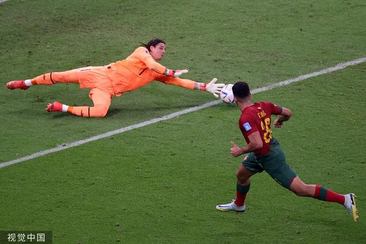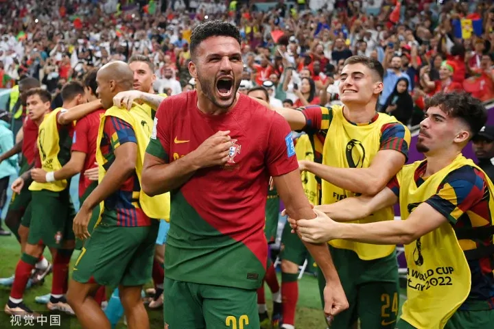 67’贡萨洛-拉莫斯挑射完成帽子戏法,葡萄牙5-1瑞士。