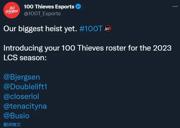 [情报站]北美100t官宣新赛季阵容:bjergsen