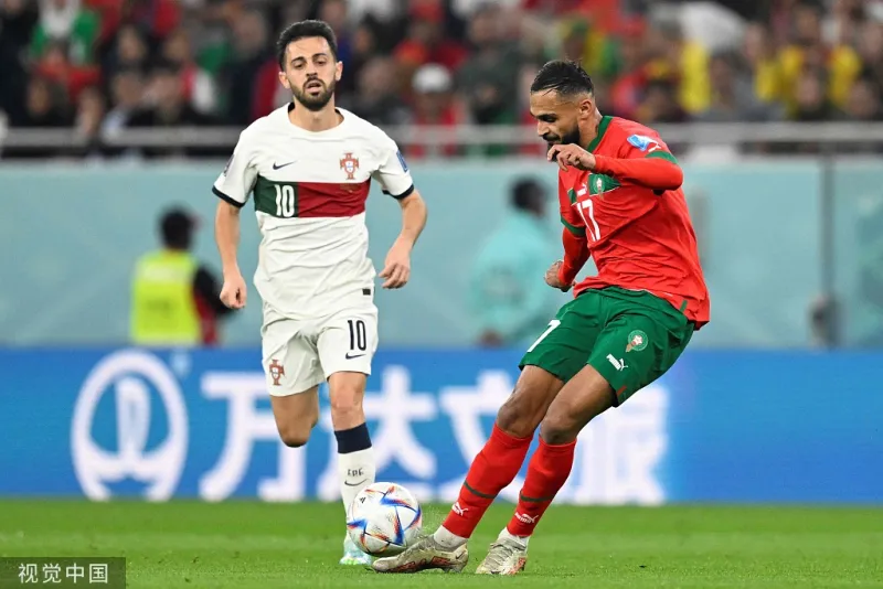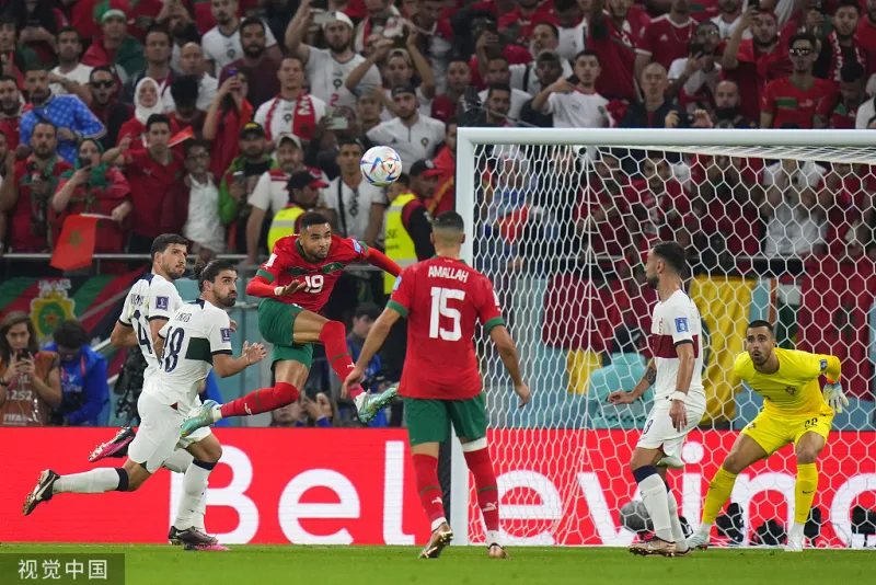 虎扑12月10日讯 北京时间12月10日23:00,卡塔尔世界杯四分之一决赛,摩洛哥对阵葡萄牙。上半场比赛,菲利克斯鱼跃冲顶攻门被扑出,阿马拉点球点处抽射将球打高,恩内斯里高高跃起头球破门。半场战罢,摩洛哥暂时1-0领先于葡萄牙。