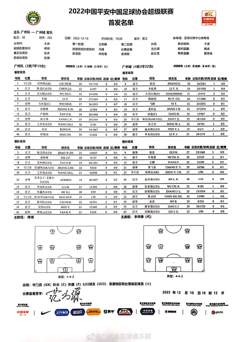 虎扑12月10日讯 中超联赛第30轮于今日进行了6场比赛,具体战报如下: