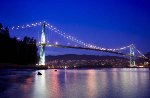 狮门桥是坐落于加拿大不列颠哥伦比亚省内的一条悬索吊桥,于1938年完工并开通,横越布勒内湾的第一海峡,连接温哥华市中心及北岸市镇,名字源于北岸山脉(North Shore Mountains)中的双狮峰(The Lions)。狮门桥是大温地区内的一条重要交通动脉,亦是温市的主要地标之一。狮门桥全长1517.3米,连同北岸引道则长1823米,主桥跨为472米,桥塔高度为111米,离海面高度则为61米,雄伟壮观。大桥有三条行车线,中央行车线为调拨车道,可转换方向以迎合交通流量。