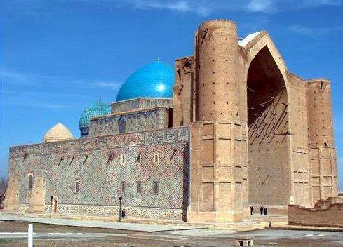 霍贾•艾哈迈德•亚萨维陵墓位于突厥斯坦(以前称为亚瑟市),建造于贴木尔时期(1389—1405)。它是贴木尔时代建筑中的杰出代表,对伊斯兰宗教建筑的发展作出了巨大的贡献,提供了中亚地区文化和建筑技术发展的独特见证,它是帖木儿(Timurid)时期规模最大、保存最完整的建筑之一,于2003年被列入了世界文化遗产目录。