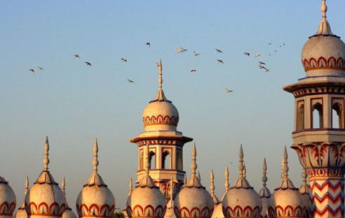 瓦齐尔•汗清真寺位于巴基斯坦古城拉合尔市,始建于公元1634年到1635年间,历时7年才建造完成。清真寺建筑宏伟壮观,是当地最著名的旅游景点之一,被称为“拉合尔脸颊上的一颗美丽的痣”。这座清真寺不仅是游人喜欢的地方,也是鸽子最喜欢的地方之一:一片片鸽子从清真寺顶飞过,与清真寺相互映衬,完美体现了人文与自然的和谐统一。瓦齐尔•汗清真寺是一座由釉陶面砖建造而成的清真寺。