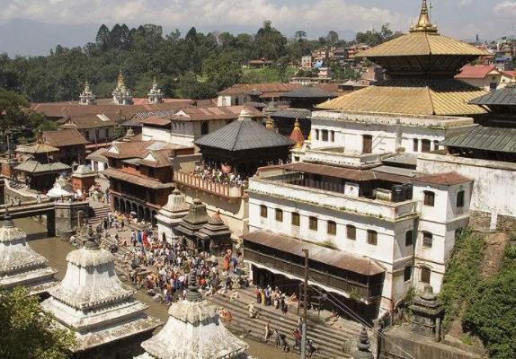 离加都五公里的帕斯帕提那寺是印度教最重要的庙宇之一。这座庙宇拥有三层式屋顶,周围还有一些漆成黄色和白色的建筑物,这里只允许印度教徒进入,如果是游客就只能站在门口好奇地观望。 帕斯帕提那寺的入口,是一整排商店和摊拉,这里所出售的物品,多半是印度教徒用的鲜花和各种颜色的蒂卡粉。这里是印度教徒举行火葬的地方。印度教相信,死后燃烧躯体、并将骨灰洒放河中,灵魂就可以脱离躯体而得到解脱。 这里有六座石造平台,位于上游的两座是皇室或贵族专用的,位于下游的四座平台是平民百姓的火葬场。