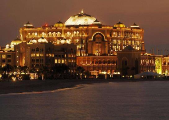 酋长国宫殿酒店位于阿拉伯联合酋长国首都阿布扎比的西北的海岸边,是迄今为止世界上最为奢华的酒店之一,斥资30亿美元修建,该酒店被认为“简直是为国王而建的”。酋长国宫殿酒店位于阿布扎比海滩,北面和西面临海,是一座古典式的阿拉伯皇宫式建筑。酋长国宫殿酒店目前由凯宾斯基饭店集团管理经营,由著名的英国设计师约翰艾利奥特设计,他的设计基调庄重大方、富有浓郁的阿拉伯民族风格。远远看去,它有点像清真寺,也有点象传说中的辛巴德或阿里巴巴时代的皇宫;每座宫殿都有一个传说的故事,具有很浓的民族色彩。
