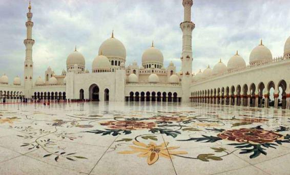 谢赫扎耶德大清真寺位于阿联酋首都阿布扎比市,采用阿联酋已故国王Sheikh Zayed Bin Sultan Al Nahyan的名字而命名。它的外观全部使用大理石建筑而成,纯白色的建筑雄伟而庄严,伴着阵阵诵经声,显得更加神圣而安详。谢赫扎耶德大清真寺宏伟壮丽,据说当年曾耗资五亿四千五百万美元才建造而成:它占地面积广大,主要由主礼拜殿以及周围的方形长廊构成,可同时容纳四万多人进行礼拜;它装修豪华,创下了多个世界之最,堪称世界上最奢华最美丽的清真寺。