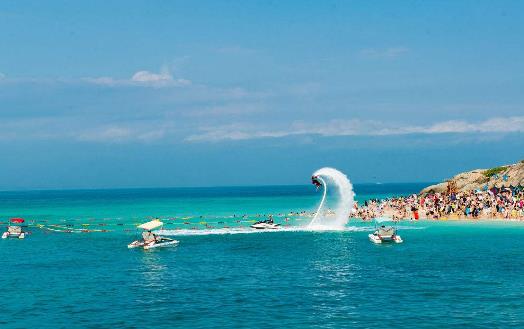 亚龙湾是中华人民共和国海南省三亚市东郊的一处优质热带海滨风景区,距离市中心区约10公里。海湾以中心有野猪岛为中心,南有东洲岛、西洲岛,西面有东排、西排,可开展多种水上运动。这里有“天下第一湾”的美称,这里的沙滩长度是美国夏威夷的三倍,长达八公里,沙质细软,海水清澈,甚至可以清晰地看见十米一下的海底景观,很值得一去。