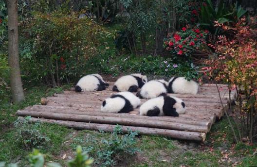 大熊猫身为中国的国宝,是中国对外外交的一个杀手锏,成都大熊猫繁育基地就成为了中国必去的10个地方之一,在这里大熊猫不会被关在笼子里,而是被放在草坪上嬉戏打闹,你可以近距离的看大熊猫们玩乐。