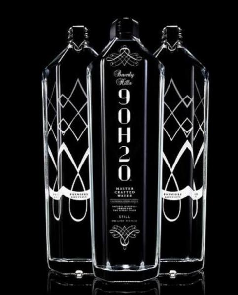 BlingH2O是无气天然矿泉水,它产自美国田纳西州的丹德里奇,出身似乎平淡无奇,这款水最大卖点不是水而是瓶子,该泉水的玻璃瓶表面用64颗施华洛奇水晶镶嵌而成的品牌标志,瓶口配木塞瓶。最初这种水只卖给他亲自挑选的著名运动员和演员,并且频频在MTV音乐电视和“艾美”奖颁奖典礼上亮相。后来也进入寻常百姓家了,只要你愿意付钱。此外,水店开在了著名的贝佛利山庄,很多好莱坞明星都是他们的常客,也是这些奢侈饮用水的最大消费群。