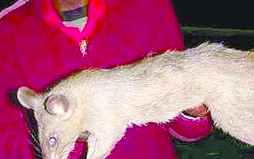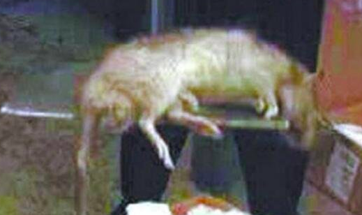 两名乌克兰科学家连忙扑了上去,经过一番折腾,那只动物被活捉了。人们惊异地发现,它竟是一只变形的大老鼠!体长50多厘米,暗灰色的毛皮,牙齿像鲨鱼一样又长又锐利,爪子畸形却很锋利,露出的尖足足有2厘米长。它没有尾巴,眼睛像两颗红宝石,发出幽幽的红光。它被科学家抓住并关进笼子后,—边叫,一边拼命用尖牙咬笼子的细铁丝。但隔了—会,它就突然安静不动了。